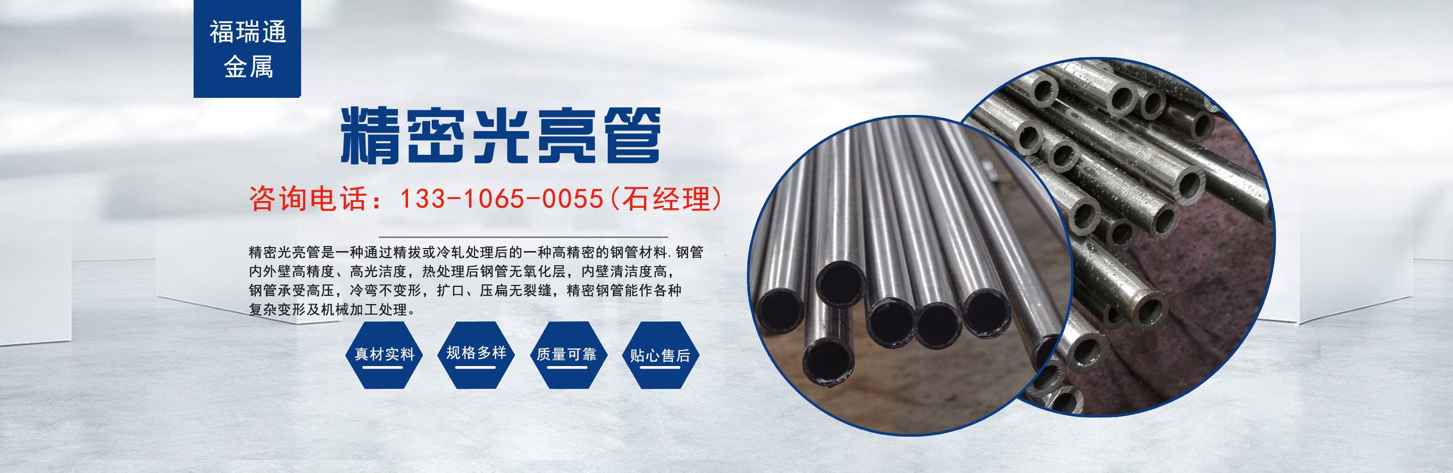山東福瑞通金屬制品有限公司長期經營:精密光亮管,無縫方矩管,16mn無縫管,Q355BCDE無縫管,六角管,厚壁無縫管,消磁鍍鋅鋼管等系列產品,材質全,價格低,歡迎大家來電選購!  山東福瑞通金屬制品有限公司將嚴格企業管理,強化產品質量,一流的團隊為客戶做好一流的服務。本著信譽第一,薄利多銷的原則,以優質的服務,靈活的經營模式開拓市場;在廣大新老客戶的大力協助支持下,不斷發展壯大。誠信是企業的生命,您的需要是我們的立業之本。我們將竭誠為新老客戶提供過硬的產品和優質的服務,也竭誠歡迎廣大新老客戶來電、來函,來人洽談業務,指導工作。  經營理念:同樣的鋼管比質量、同樣的質量比價格、同樣的價格比服務、 同樣的服務比信譽。  企業精神:團結拼搏、艱苦奮斗、敬業奉獻、務實求新。...